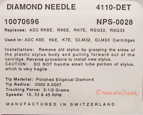 Product DescriptionSTEREO RECORD NEEDLE ADC QLM32/III Mk III RSQ32 RK-6E 7E 8E K6E K7E K8E 4110-DET0