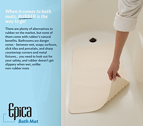 STURDY RUBBER CONSTRUCTION: The Epica Bath Mat’s strong rubber material will outlast other mats made of flimsy plastic Equipped with hundreds of high-strength suction cups, our mat securely attaches to the bottom of your tub and offers superior protection against hazardous falls. Its natural flexibility and elasticity make the Epica a sturdy choice for the savvy consumer.