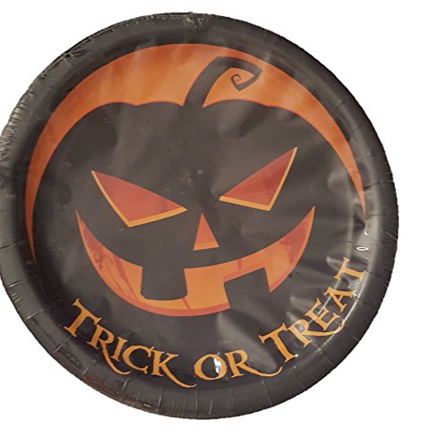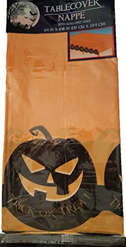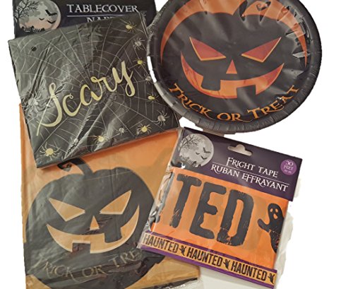 Halloween Party Bundle w Scary Pumpkin Plate (18), Table Cloth (1), Napkins (18) , Haunted Fright Tape (30 Ft)