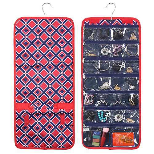 - Designed for Practicality: The jewelry organizer can be hanged just about anywhere for ease of use or it can be tri folded and sealed with two Velcro closure for storage or easy travel. This organizer has 11 transparent pockets to hold your rings, earrings pins and other small pieces of jewelry. Easy to clean, fast dry