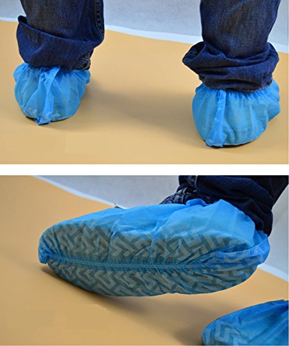 ►CONVIENIENT SIZE AND EASY TO USE: Easy On, Easy Off! These Disposable Boot and Shoe covers are one-size-fits-all covering most shoes up to size 11. Each package includes 100 blue shoe covers (50 pairs) that will protect your shoes.