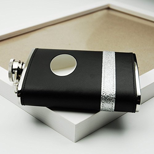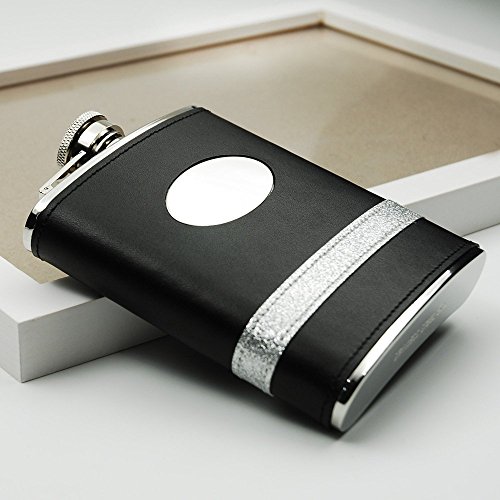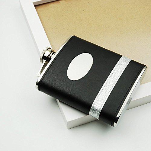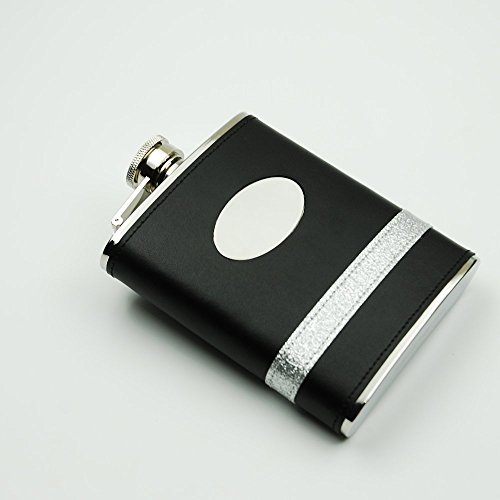 -. Feature : 6oz 18/8 Stainless Steel Black Leather Hip Flask with Oval Badge / with Oval Badge and Shiny Decoration / Contoured flask matches the curve of one's hip or thigh / Food Safe and Durable / Savage