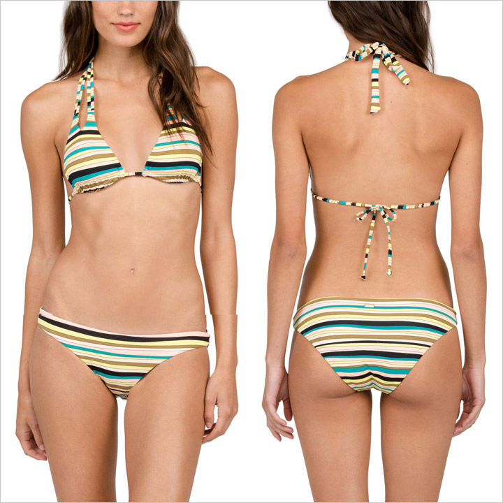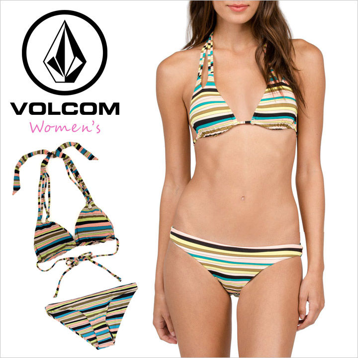個性的な配色のボーダー柄をデザインした、ビキニ上下セットです。