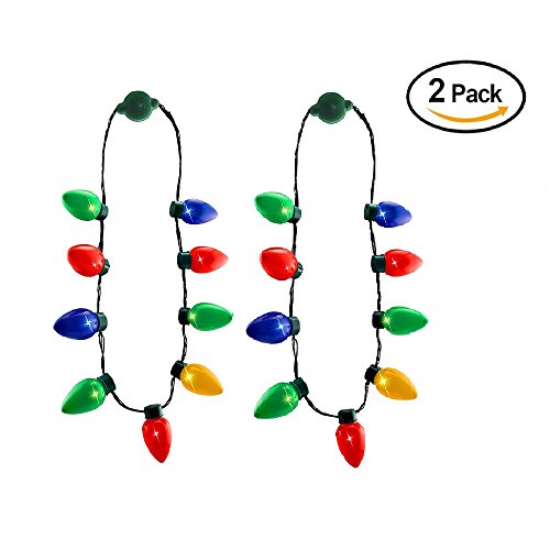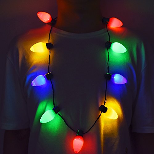 9 LED Light Up Flashing Christmas Necklace 4 colors (red, blue, yellow and green) 35' perimeter necklace 6 flashing mode,press button to change the mode 2 x CR2032 cell button batteries includedinstalled - batteries are replaceable