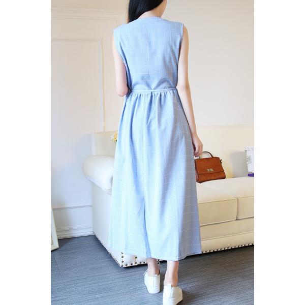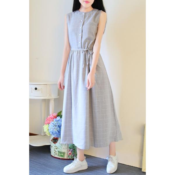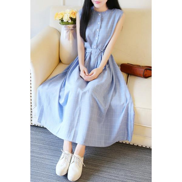 ノースリーブチェックワンピース レディース シンプル ガーリー ロング 格子 ボタン 2017 新作 ファッションカジュアルに着こなせる、シンプルなチェックワンピースです*フレアなシルエットで可愛らしい雰囲気ながら、ロング丈で上品に着こなせます◎カーディガンやシャツなど幅広いスタイルに合わせやすいアイテムです。【カラー】グレー・ブルー【サイズ】[S]着丈116/胸囲88/ウエスト82/肩幅35(cm)[M]着丈117/胸囲92/ウエスト86/肩幅36(cm)[L]着丈118/胸囲96/ウエスト90/肩幅37(cm)※製品により多少の誤差が生じる場合がございます。【ご使用上の注意】着用に問題のない製法のほつれ、商品の性格上、開封された商品・一度でも着用されました商品の返品・交換は一切お受け致しません。イメージと違う、サイズが合わない等の理由での返品は一切受け付けておりません。購入後のサイズ交換は対応しておりません。生産終了後すぐ発送しているため匂いがある場合がございます。ご了承ください。【生産国】made in china※商品はご注文を頂いてから2週間前後の到着となります。