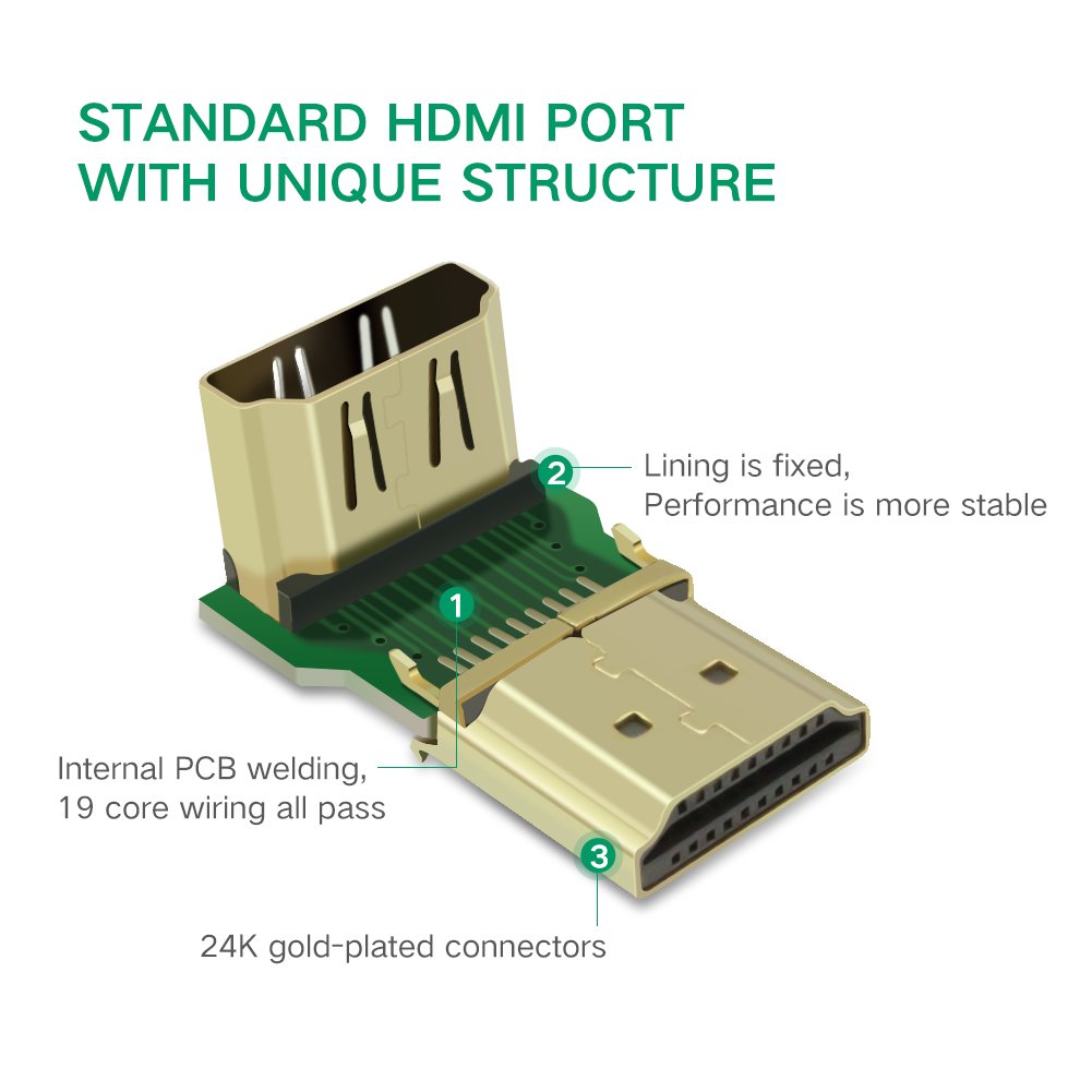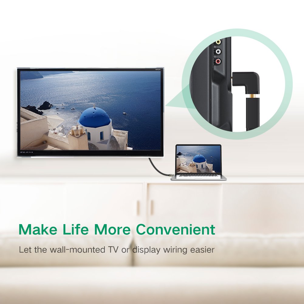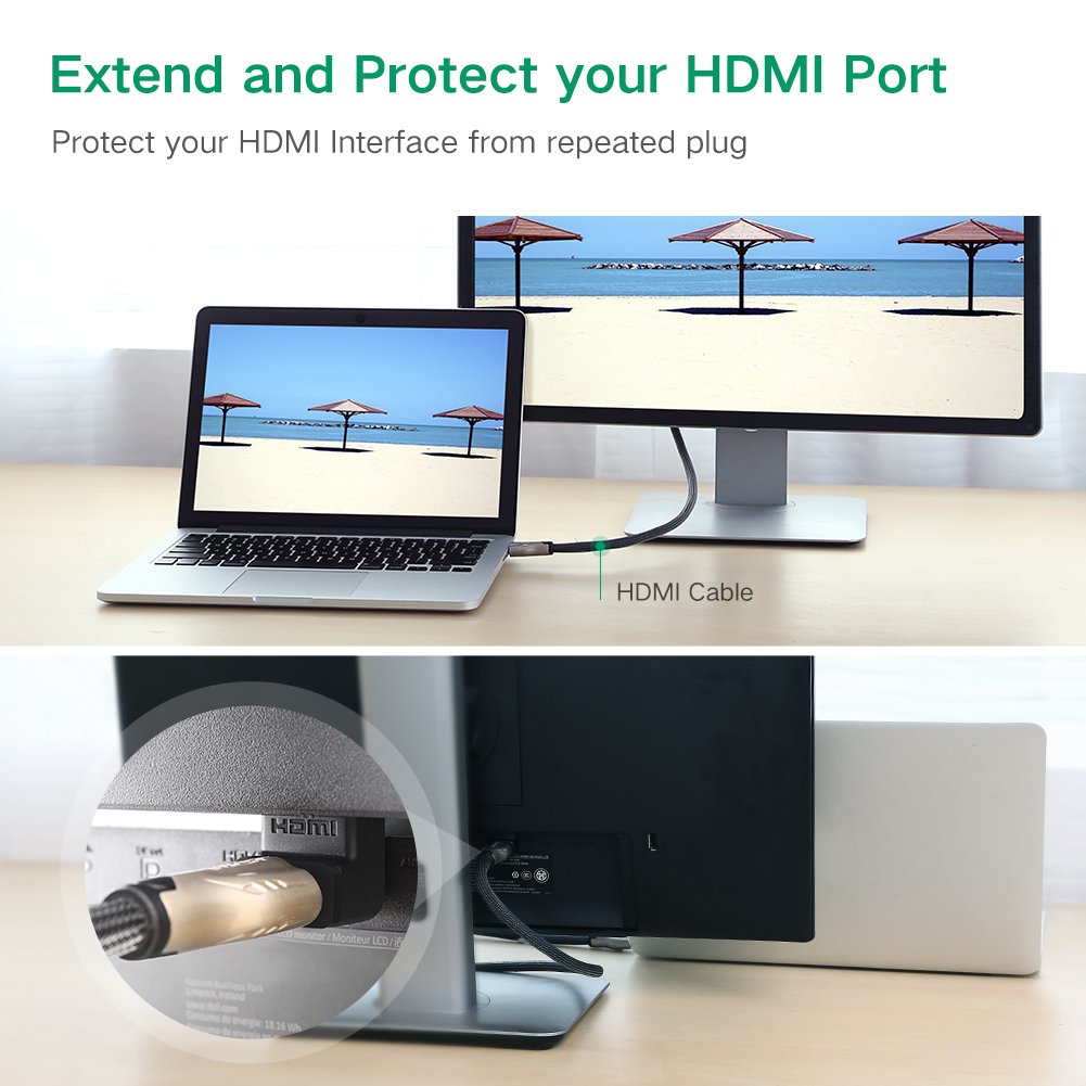 Ugreen HDMI High Speed Port Saver Male to female adapter (90 degree conversion L type) makes it possible to reach a place that is difficult to connect.