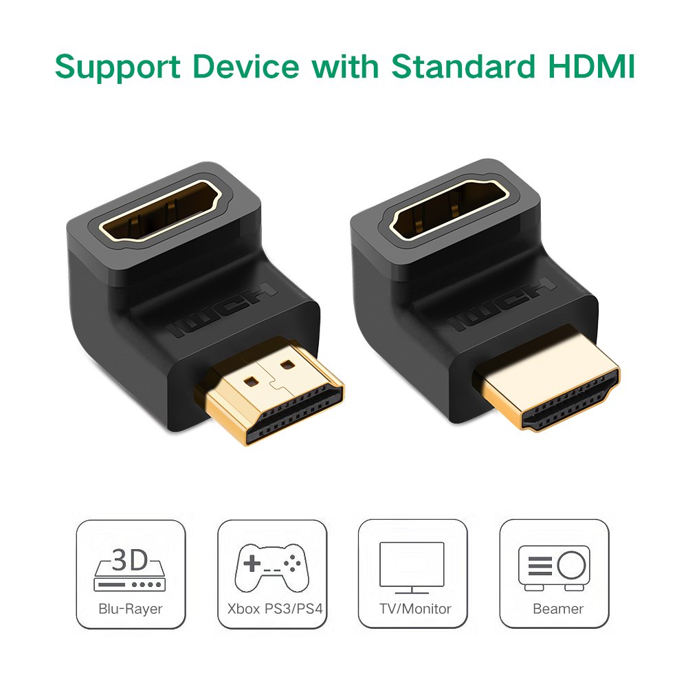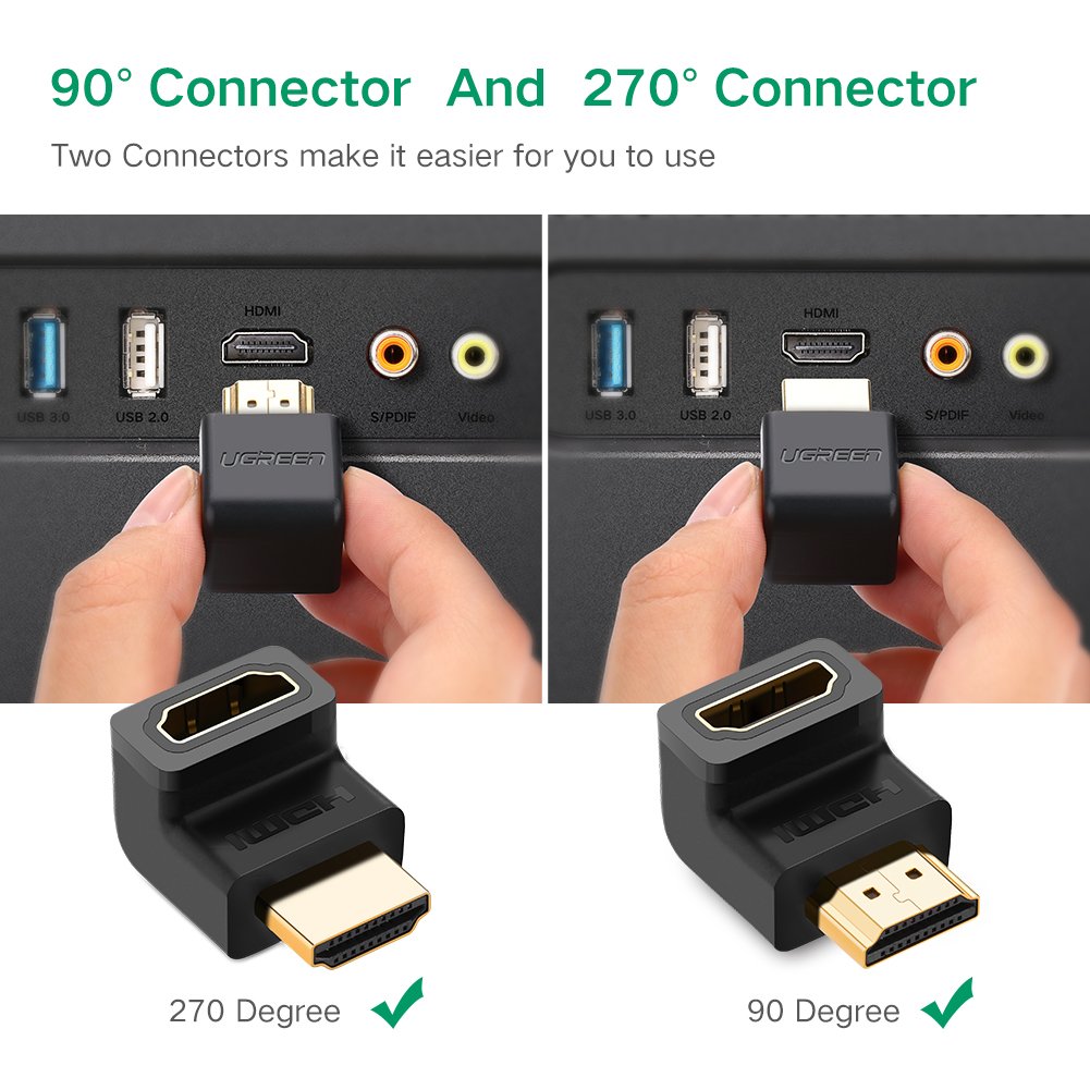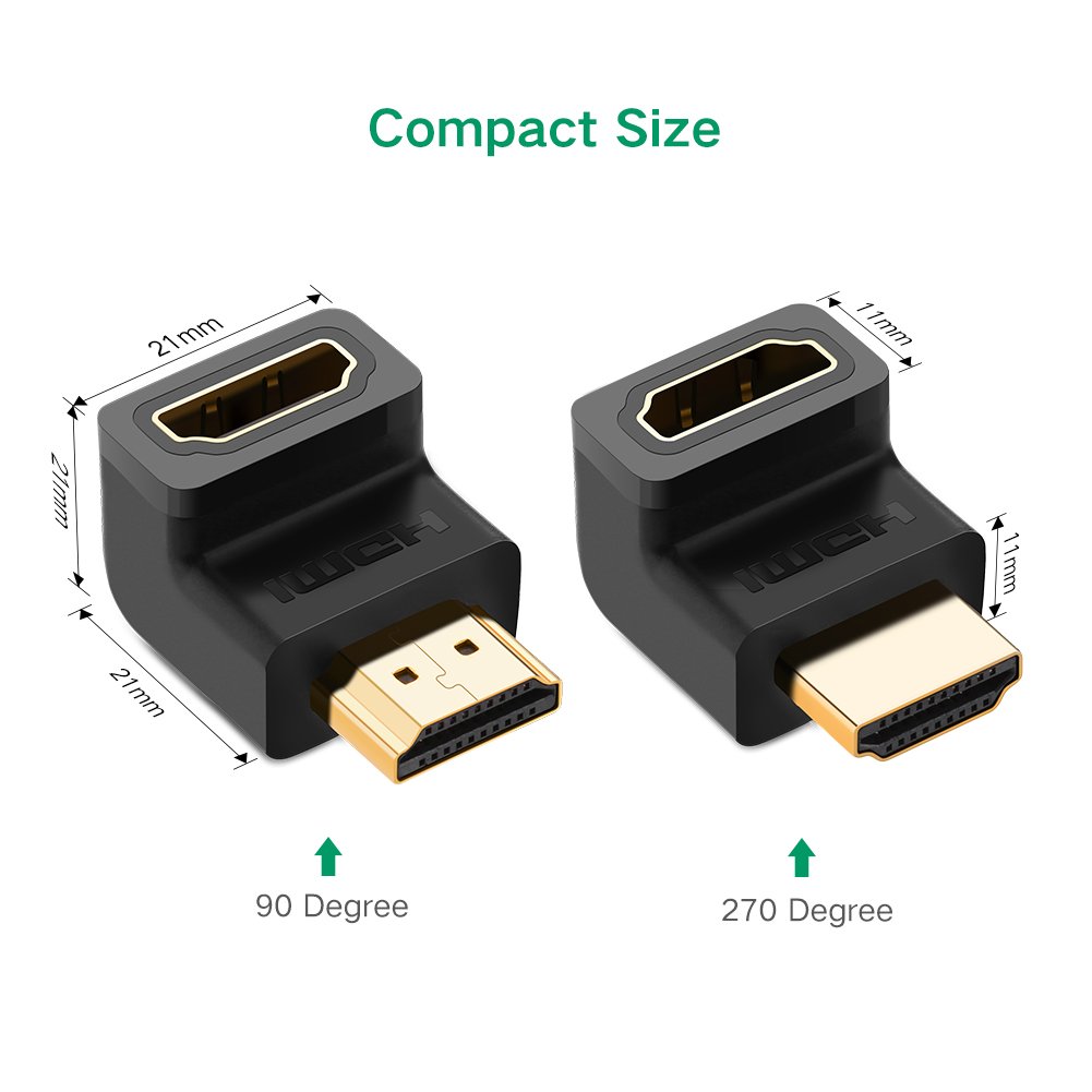 Ugreen 20110 + 2010 HDMI high speed port saver male to female adapter, 90 degree conversion L type x1;