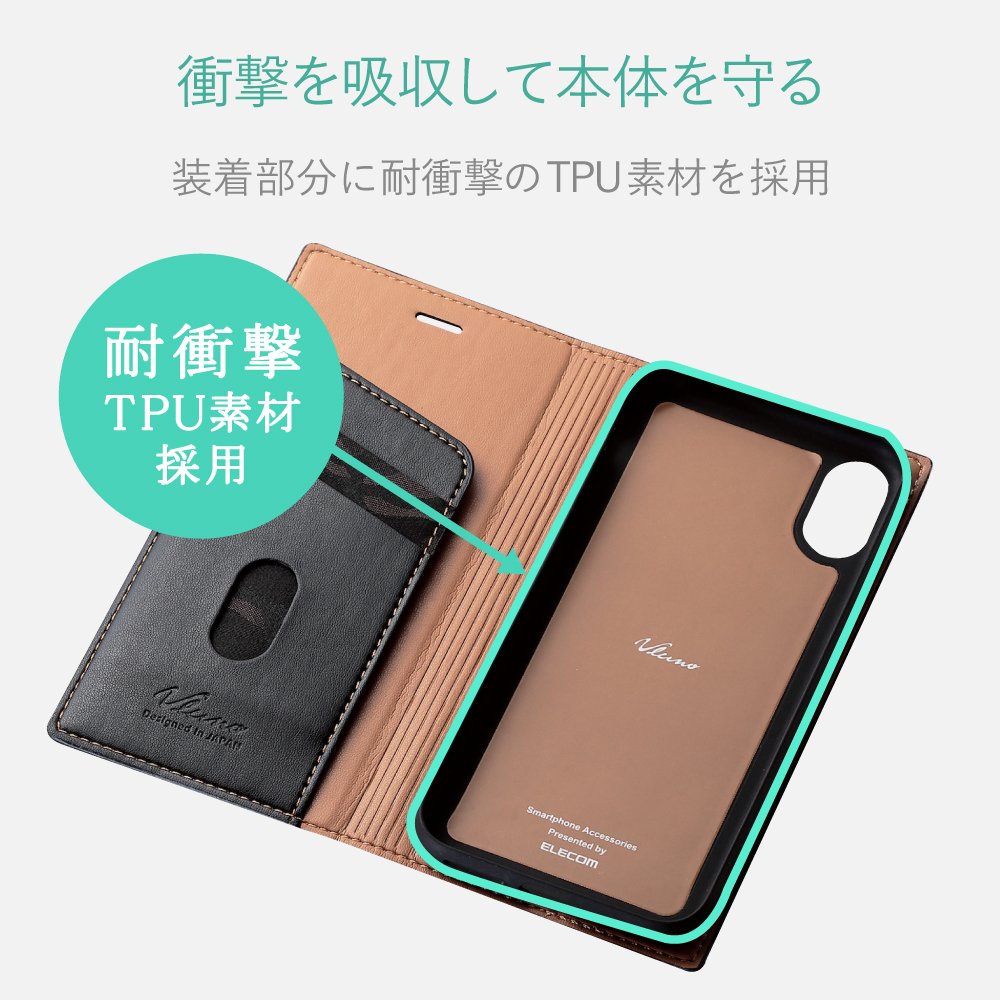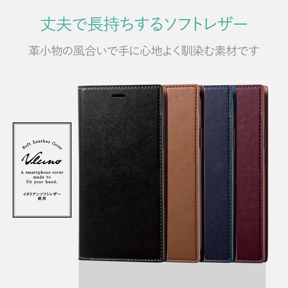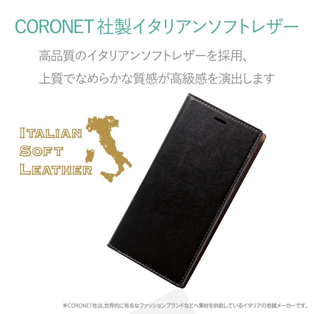Case for iPhone X 【Handbook type leather Italian leather Coronet】