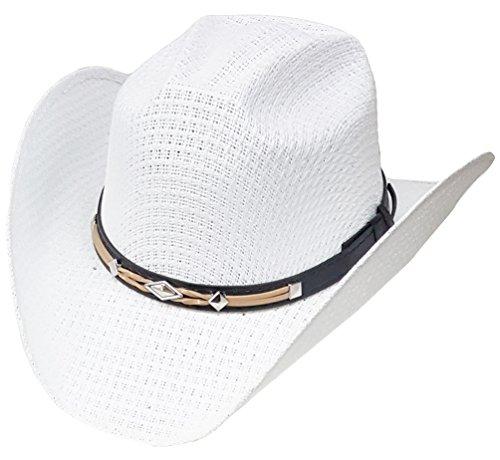 Binding : Apparel Product Description #3100N straw cowboy hat Leather-Like Hatband. With elastic sweatband for a comfortable snug fit everytime Wire in the brim for custom shape. Brim 3", Crown 4 1/2". Size :S, M, L, XL. Our hats feature attractive antiqued finishes with deep vibrant colors. Stiffened for durability to maintain shape. For hat size measure around head, just above eyebrows and ears. Hat Sizes: XS=21 1/4' | S=21 1/8'-21 1/2' | M=21 7/8'-22 1/2' | L=22 5/8'-23 1/4' | XL=23 1/2'-24'. Buy one of our quality Modestone Western Shirts, Belts Buckles in Kids Adult sizes to go with your fine Modestone Cowboy Hat. Hatbands color shades may differ as they are handmade, if you prefer one of the styles pictured please email us. 0