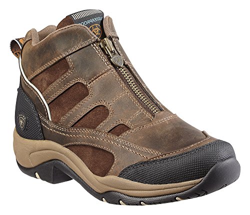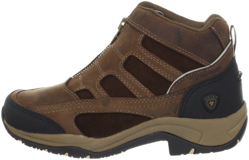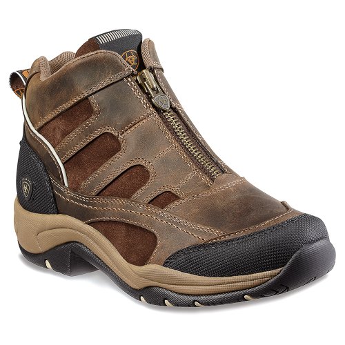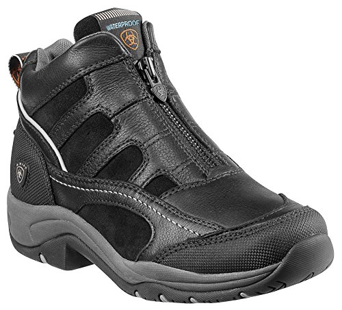 Ariat ATS technology supports and cushions as you move, promoting good posture and reducing fatigue. At the core of ATS technology is the Ariat ATS composite shank. This patented shank design reduces skeletal and muscular fatigue and injury. Mid-foot support reduces metatarsal stress. The forked shank design allows natural forefoot flex. The ATS footbed has a low-friction surface to protect from heat build-up and blistering. Shock-absorbing gel forefoot cushion reduces skeletal impact stress on knees, hips, and lower back. Cupped footbed chassis offers torsional stability. These women's terrain zipper work shoes feature waterproof leather construction. Easy-on with zipper at front and pull loop at back. Padded collar. Waterproof membrane. Imported.Feature