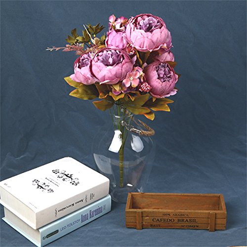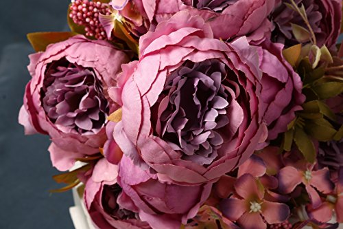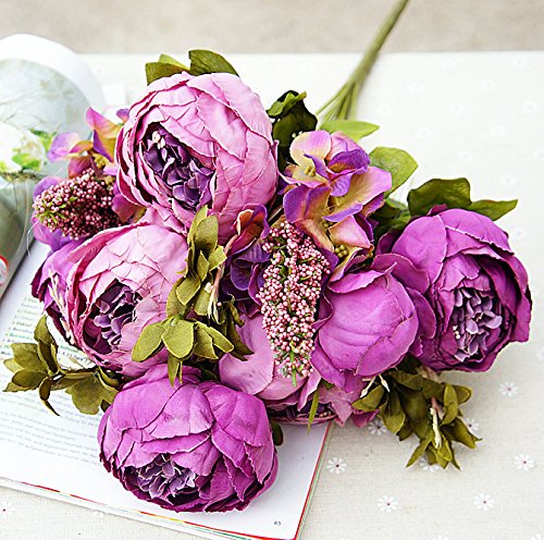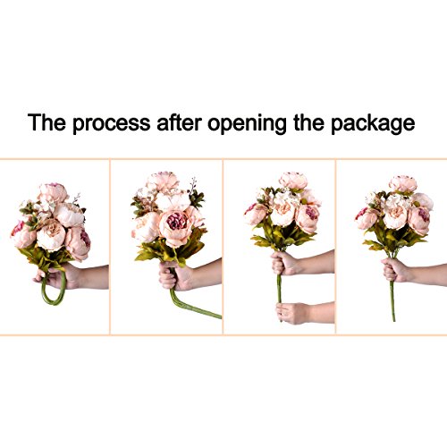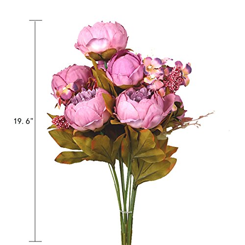 2.INCLUDING: Each bouquet has 13 stems,with 6 flowers and 2 buds,each peony approx 3.5''H x 2''W',total length: 19.5 Inch.