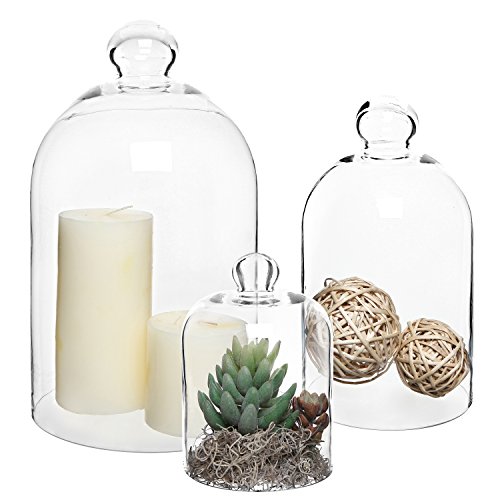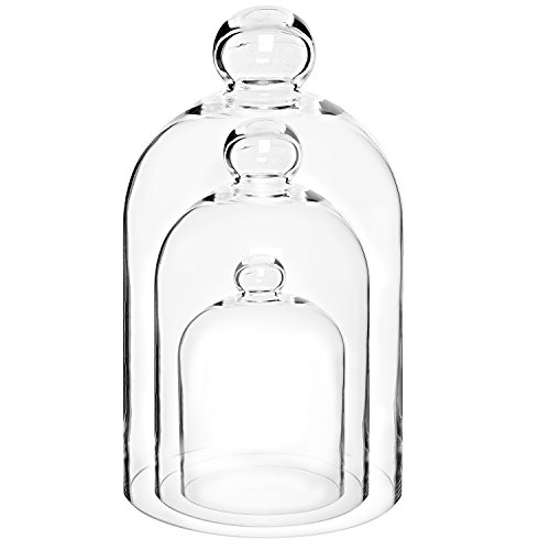 Bring a touch of elegance into your home with this set of 3 clear glass bell jars.