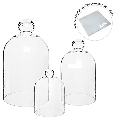 Charm family and guests with this set of 3 beautiful bell jars. Made of clear glass, these decorative cloche jars are perfect for displaying all manner of decorative items, from small plants to cherished keepsakes. Each jar in the set is a different size - 1 large, 1 medium, and 1 small - and you can either create a captivating centerpiece by arranging them together or bring delicate charm to many rooms at once by displaying the jars separately around the house. Add elegant style and eye-catching display space to your home today with this charming set of 3 decorative bell jars.**Official MyGift® product includes microfiber polishing cloth.**