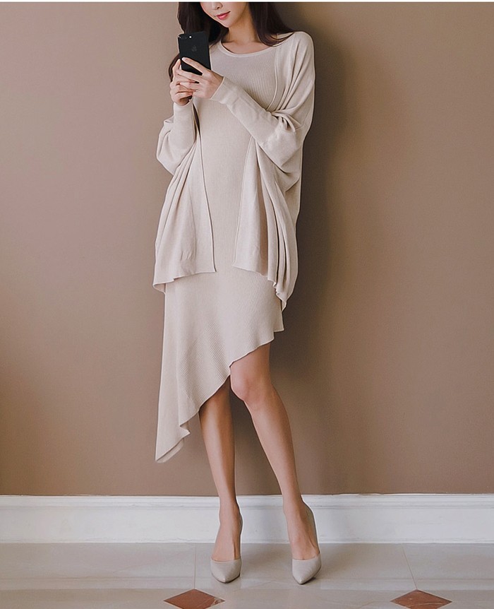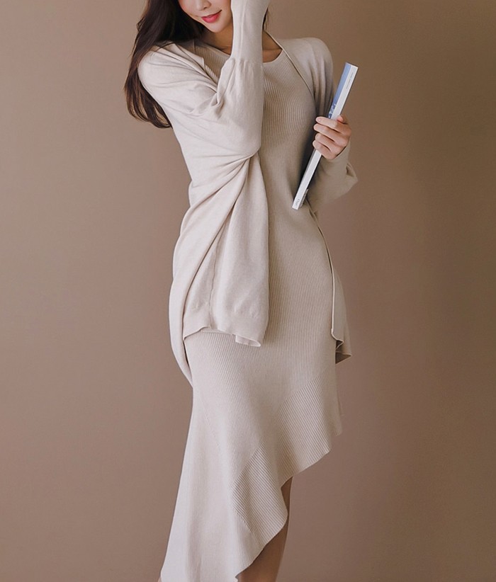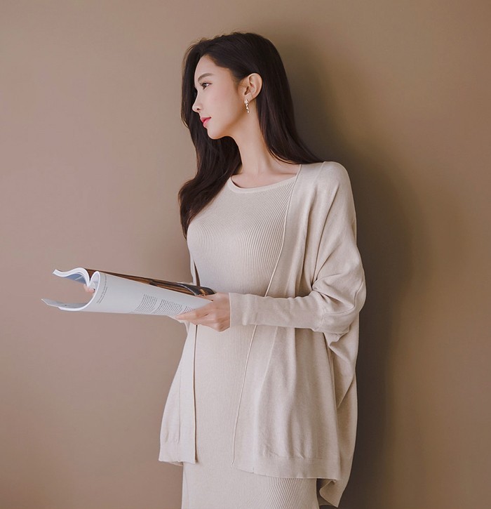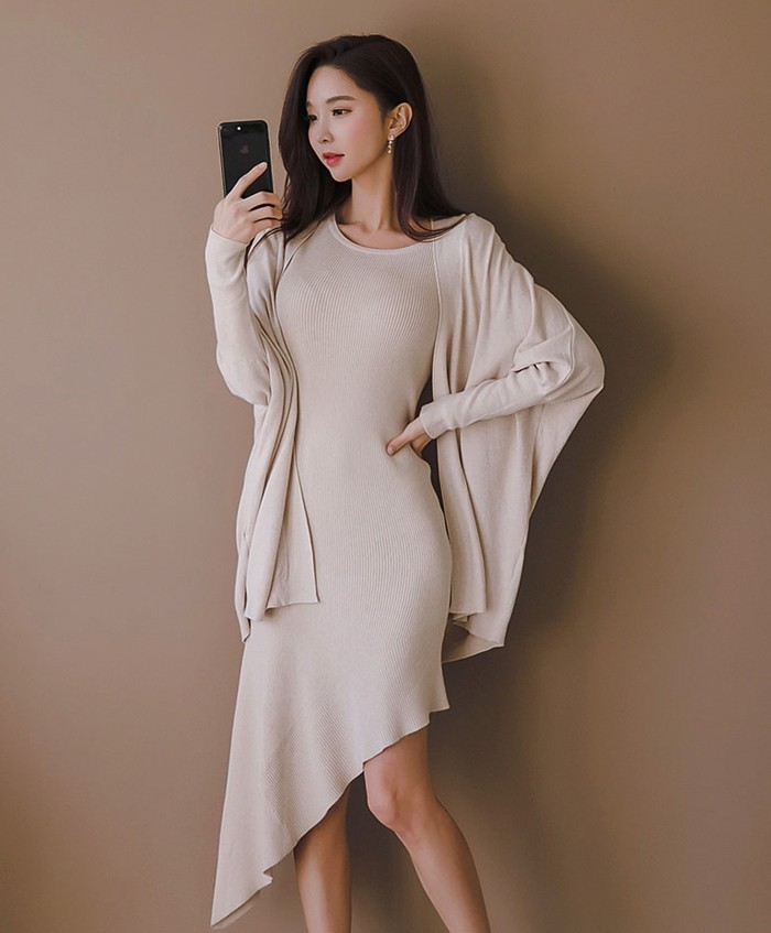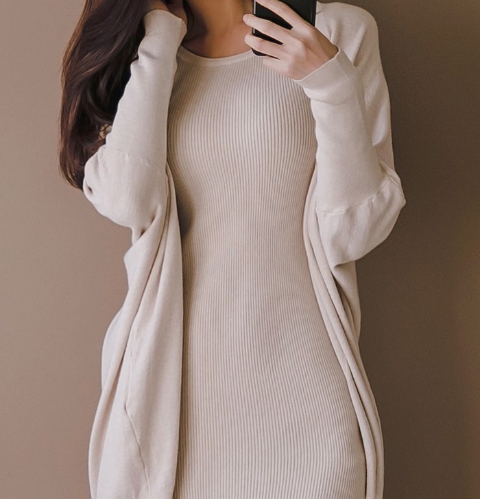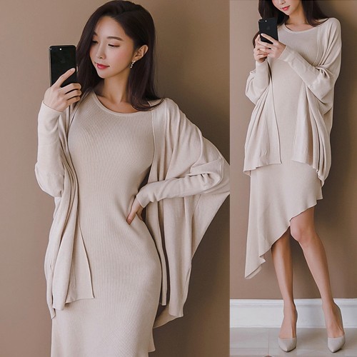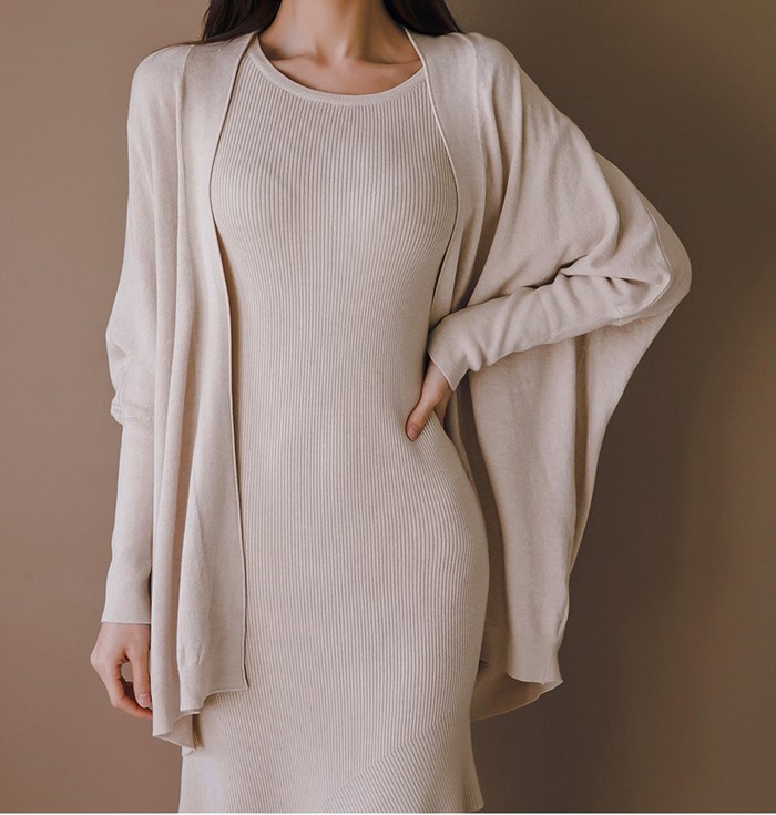 商品名:ワンピース カーディガン セット ロング丈 無地 ニット