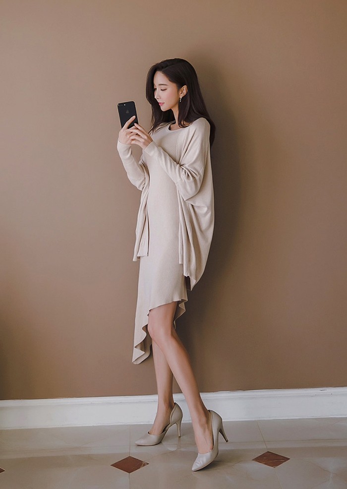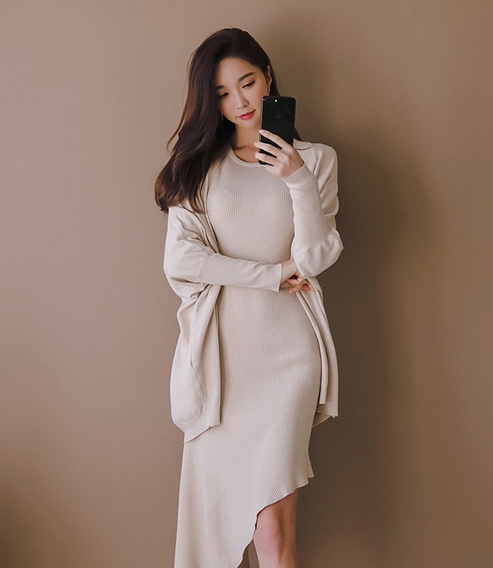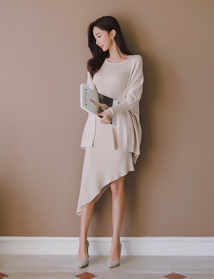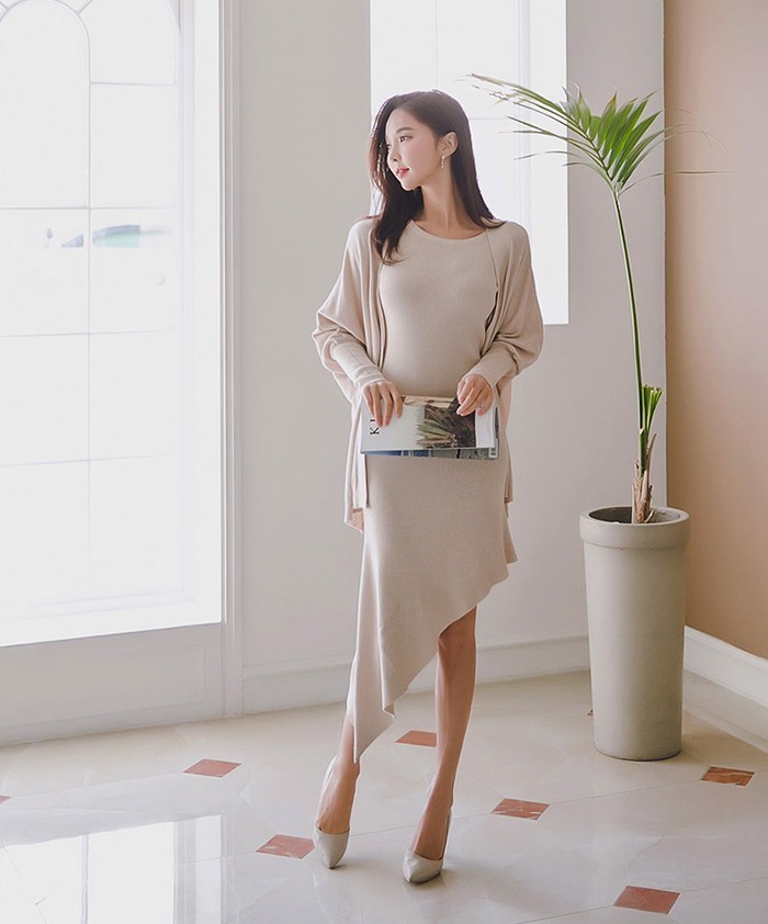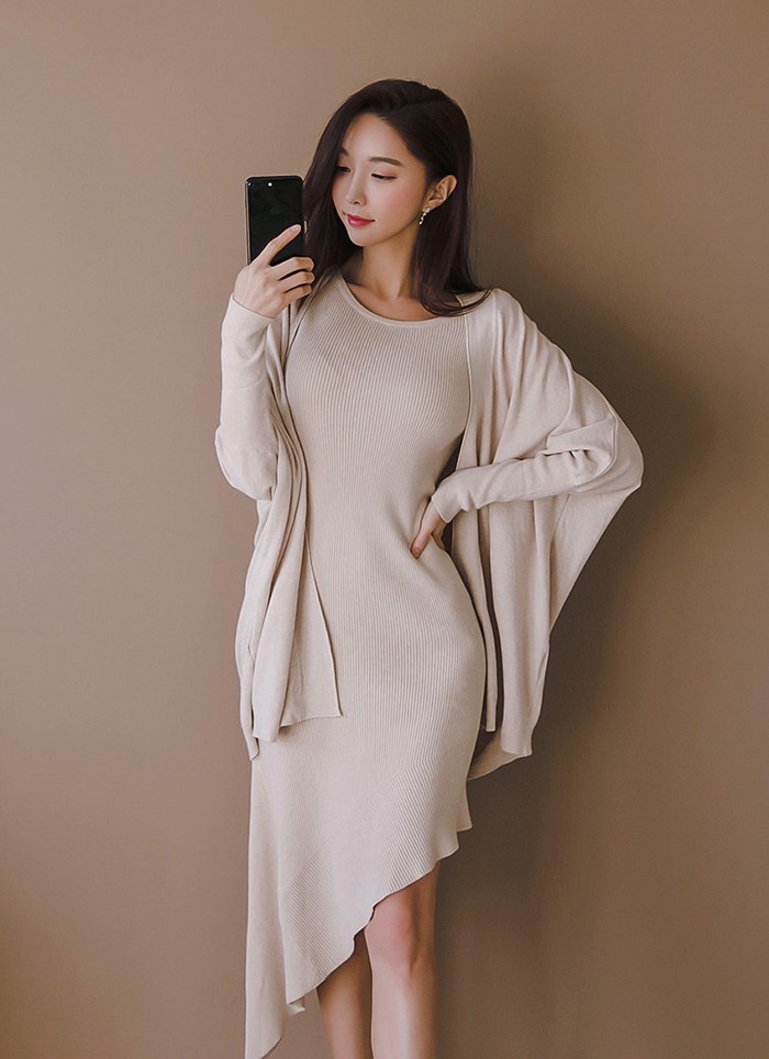 商品名:ワンピース カーディガン セット ロング丈 無地 ニット