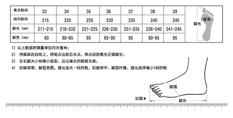This shoes is standard size.If your foot are chubby type,you may choose one size bigger.Please measure and choose carefully before place the order,NOT exchange are allowed !