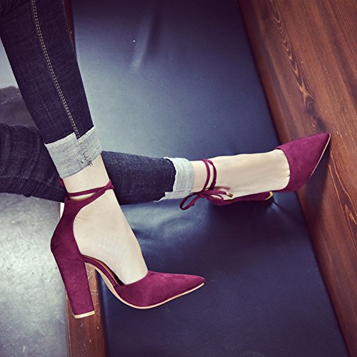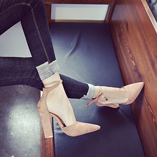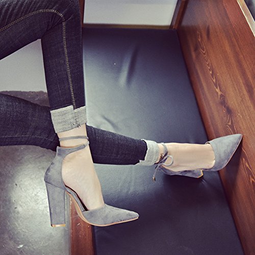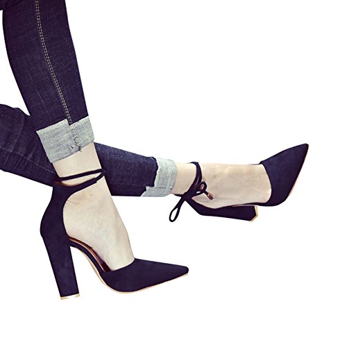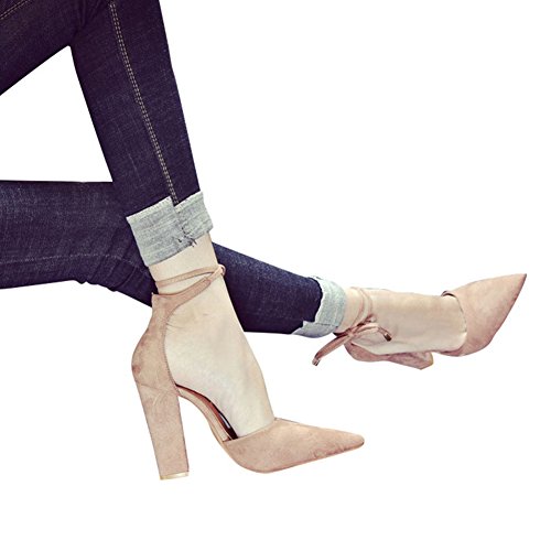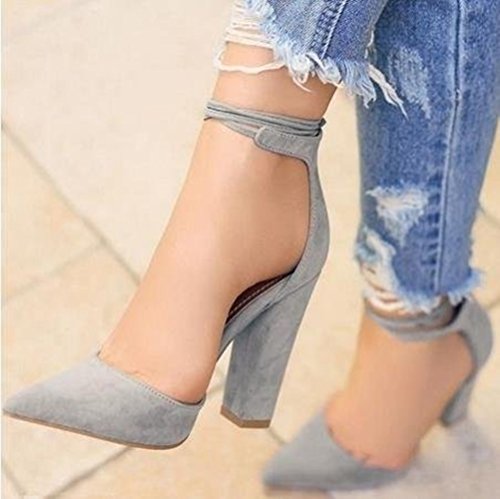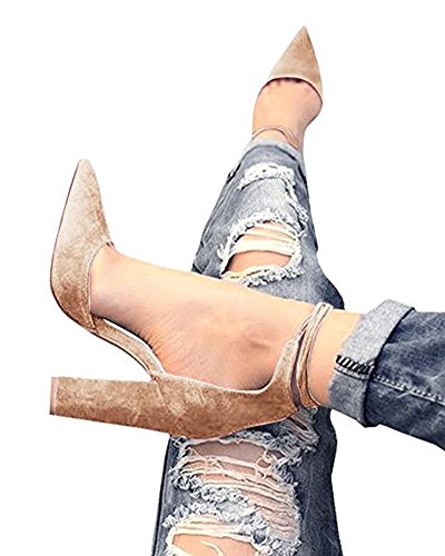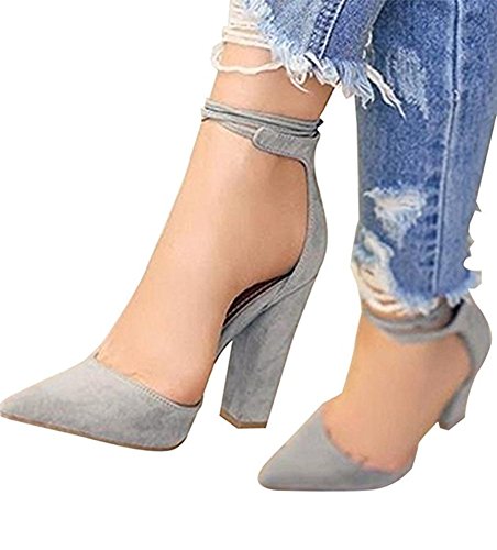 Huiyuzhi Womens Chunky Ankle Strappy Sandal Pointed Toe High Heels