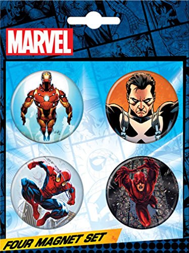 - Includes one each Ironman, Punisher, Spiderman and Daredevil character button magnets; each magnet measures 1.25" in diameter
