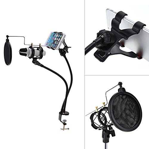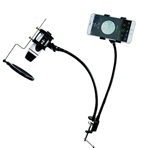 -. Brand : SIBORIE -. EAN : 6934986267925 -. Feature : 【WIDE ARM LENGTH】The metal gooseneck is up to 34cm long while straitened. You can adjust the microphone holder in 360 degree to fit yourself. The MIC holder part and cellphone holder part can be separated so that it is more flexible for you to choose how to use. / 【WIDE CLAMP WIDTH】6.5cm max width of desk base clamp is much wider than other stands. It can meet your satisfaction in most situations. Even the thick marble table can be clamped tightly. / 【WIDE APPLICATION】With 13cm max width of cellphone clip, this stand is compatible with any 4-11" smart phone. The MIC holder part is suitable for any microphone of diameter less than 5cm. Specially designed for any situation when microphone and phone are used together. / 【LIGHTWEIGHT And PORTABLE】Metal material and plastic design decreases the weight. Easy to carry and install. It will only cost you a few minutes to assemble it and you can clip it on anywhere of the desk edge/car/bed. / 【QUANTITY GUARANTEE】If you are not satisfied with our product. Please contact us, we will offer you a full refund or a new replacement. -. IsAutographed : 0 -. IsMemorabilia : 0 -. MPN : SSS-003 -. PackageQuantity : 1 -. PartNumber : SSS-003 -. ProductGroup : Musical Instruments -. ProductTypeName : SOUND_AND_RECORDING_EQUIPMENT -. Title : Microphone&Phone Stand SIBORIE Flexible Arm Stand With Bendable Clamp MIC Clip Holder Desk Clamp With Pop Filter Cover Metal Goosenecks For Karaoke/Video Recording/On-line Chatting And More