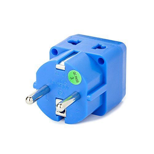 This grounded Universal plug adapter with the patented universal receptacle design accepts plugs from most countries including the US and Canada. The 'Type E /F' plug adapter is grounded and fits into Shucko outlets in countries such as Germany, France and more. Ideal for travelers!