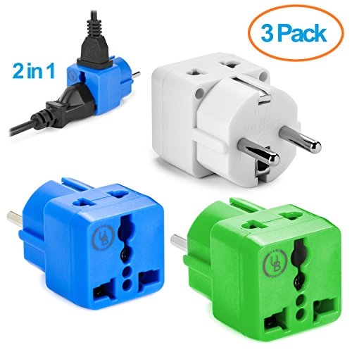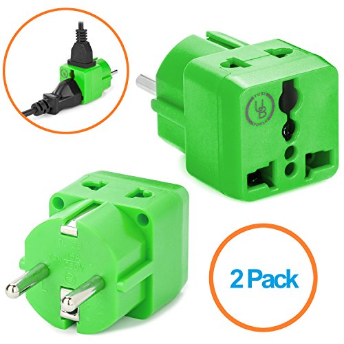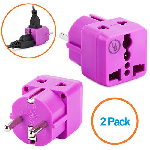 Yubi Power Grounded 2 in 1 Schuko Plug Adapter Type E/f for France, Germany, Europe, Spain, Turkey, Portugal, Poland, Austria, Belgium, the Netherlands, Sweden, Norway and South Korea / with Two Universal Plug in Ports /Grounded - Ce Certified - Rohs