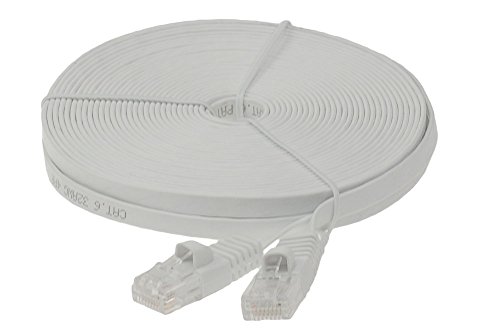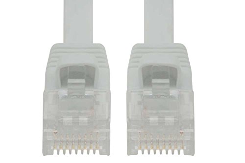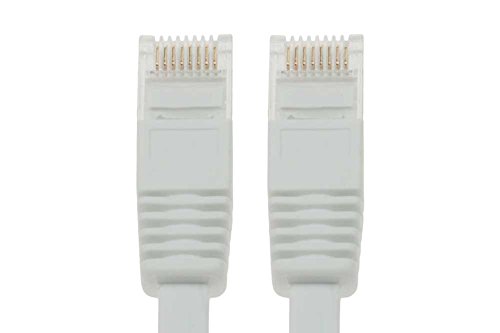 Flat cables fit easily between cramped spaces improving the look of your home or office because they are flat and easy to hide. These flat cables are a perfect fit under carpets, up walls, and even behind furniture. The cables are only a slim 1.2mm thick that gives a plenty of ventilation room for network rack wiring. It is a great advantage over fat cables that add more bulk to your work space.SF Cable patch cables are made of 100% bare copper wire and 50 micron gold plated RJ45 plugs. We do not use CCA (aluminum wire). Our Enhanced Cat6 550Mhz Snagless Patch Cables will handle bandwidth intensive applications up to 550 Mhz and beyond. Designed for Network Adapters, Hubs, Switches, Routers, DSL/Cable Modems, Patch Panels and other Computer Networking applications. T568B (AT&T 258A) Wired UTP Unshielded Twist Pair CM Type PVC Jacket 32AWG Flat 4pair Stranded Copper Wire 50 Micron Gold Plated RJ45 Plug Color: White Length: 60ft