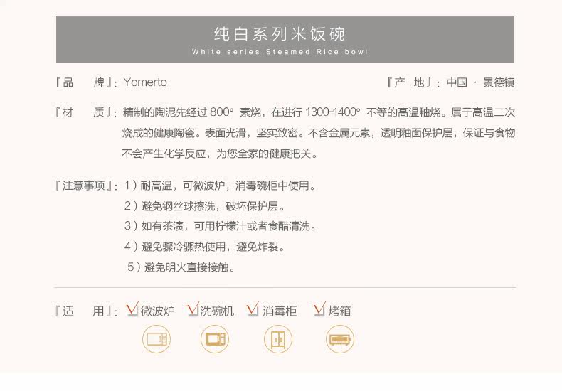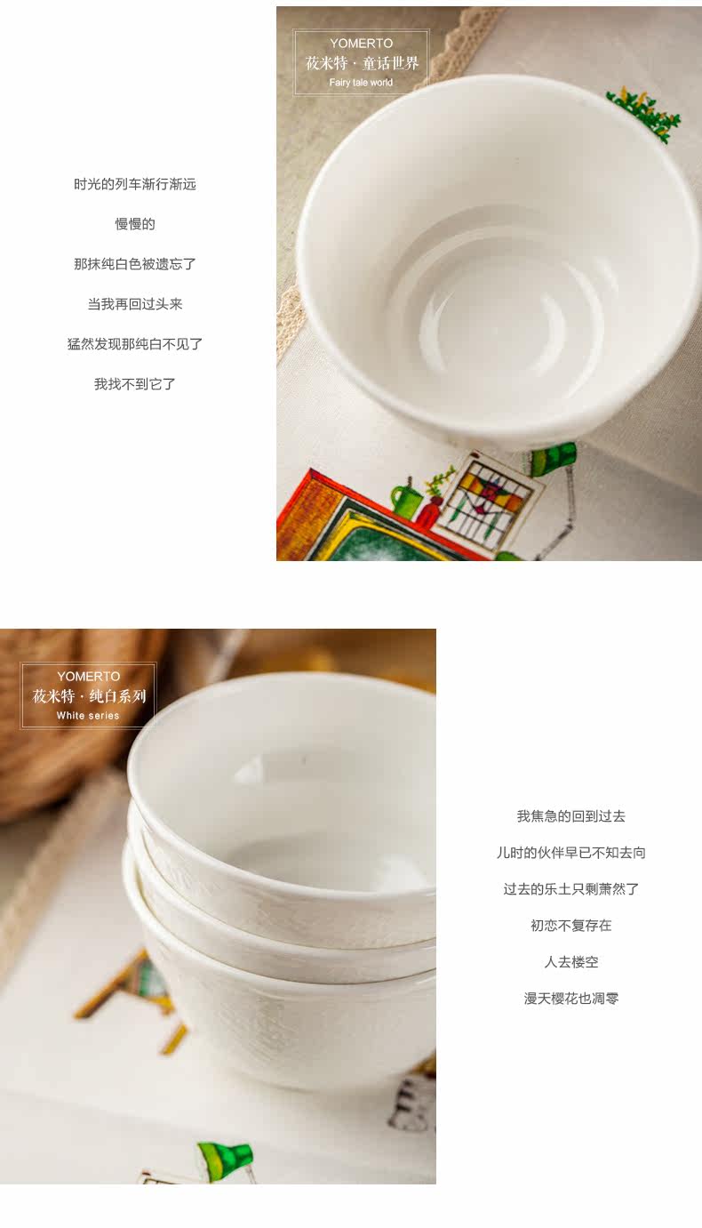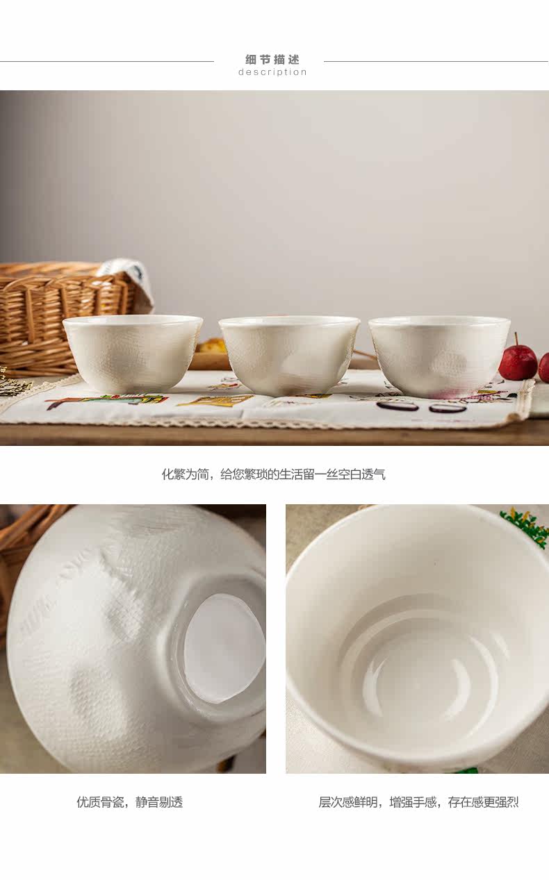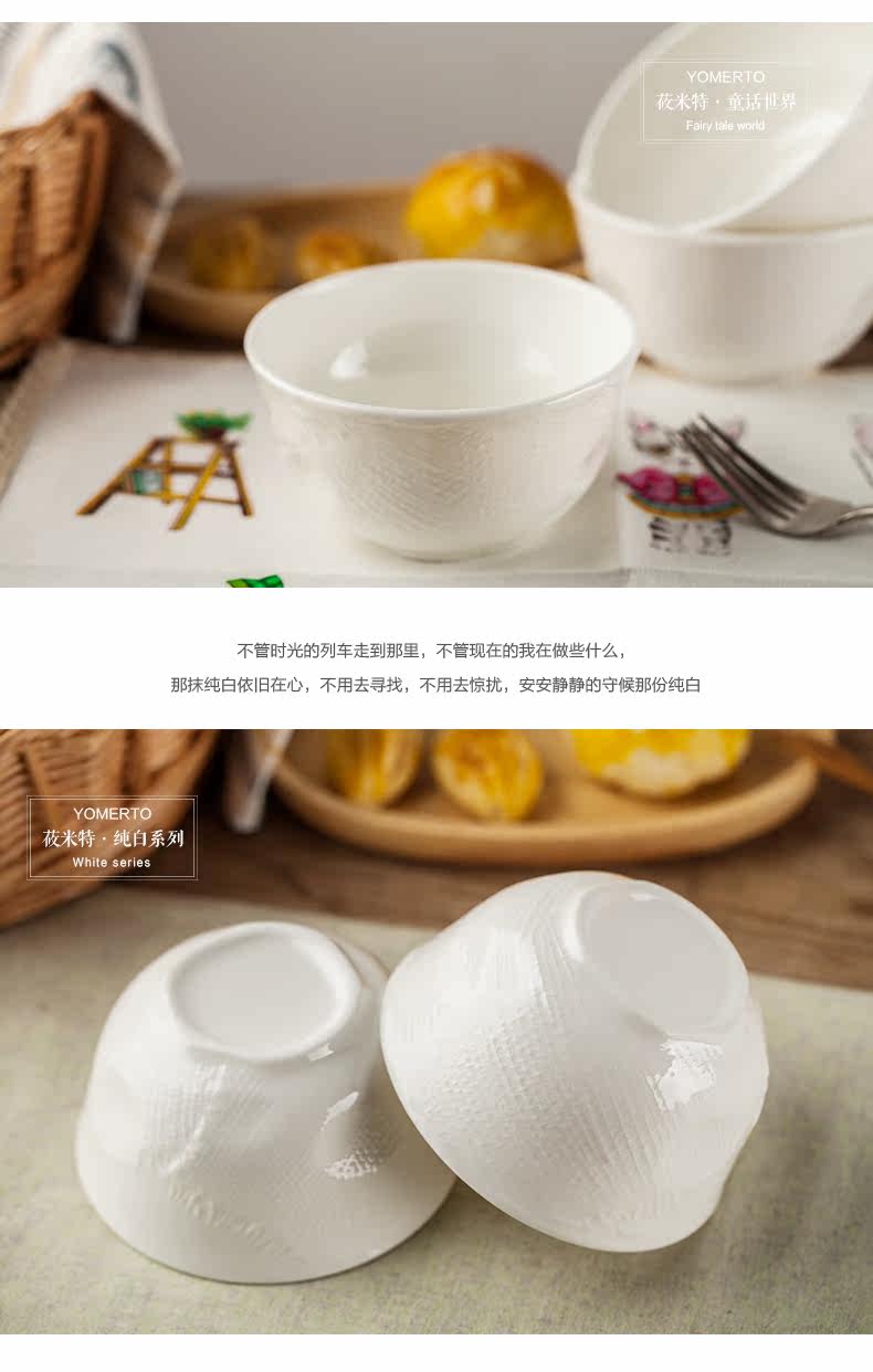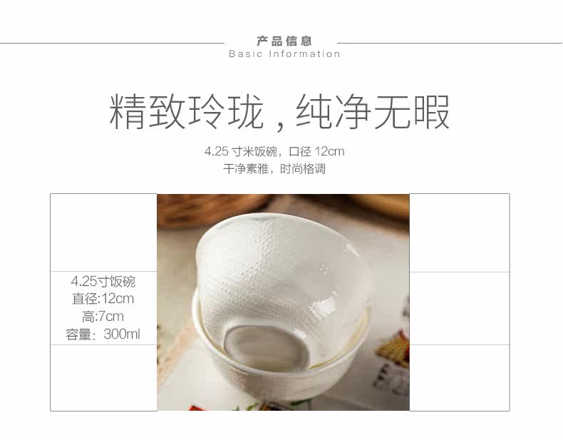 纯白骨瓷4.25寸米饭碗 景德镇创意个性小汤碗泡面碗家用餐具套装