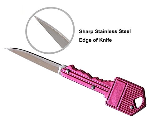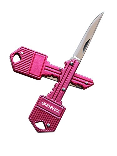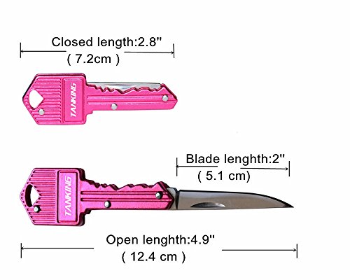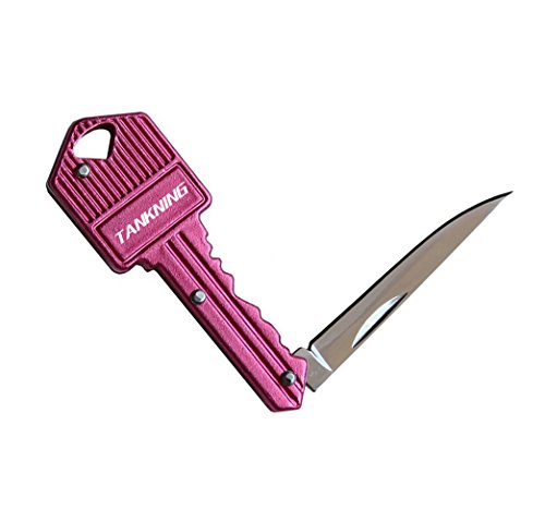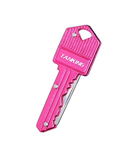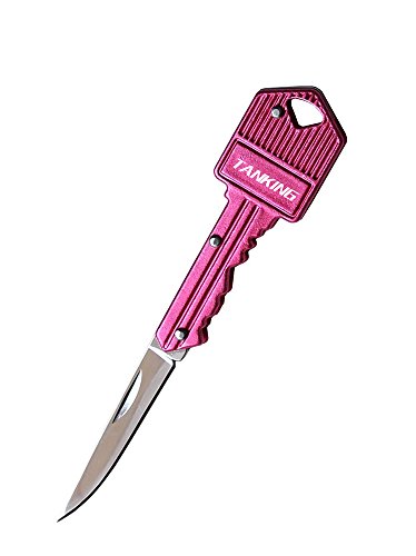 TANKING Pink Key Knife,Key chain Shaped Folding Pocket Knife / Self Defense Keychain Knife
