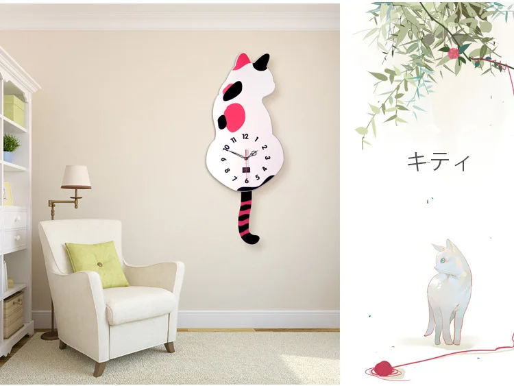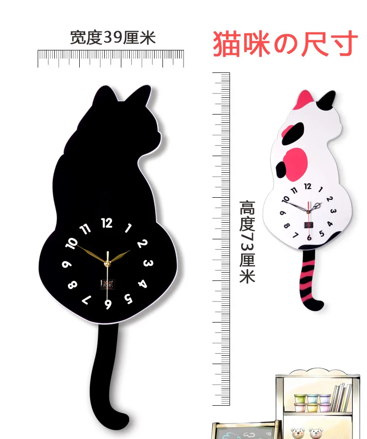 New Arrival Cartoon Cute Cat Wall Clock Mute Children BedroomWall Clock Creative Decoration