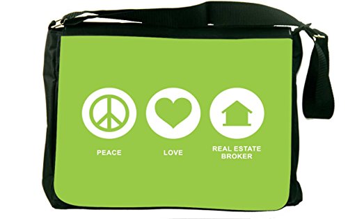 Studio : Rikki Knight LLC Publisher : Rikki Knight LLC Binding : Office Product Product Description Whether from home to the office, on a business trip or to school, the Peace Love real estate Broker Lime Green color laptop bag notebook bag messenger bag school bag keeps you comfortable and your cargo safe and sound - this bag features pockets on the outside below the flap for your cellphone, pens, iPod, notebook etc. And also a zippered compartment on the inside, with plenty of space to store your textbooks, folders, files, etc. And up to a 14 inch laptop (laptop sleeve sold separately) - the vibrant image on the front is professionally printed and will not fade or peel with time and this bag will surely be an eye catcher wherever you go with it. Disclaimer: all images are printed directly into the material - the Texture of the image will always be a flat surface. Any images that appears to be 3D, textured, or glittery are flat printed images. 0