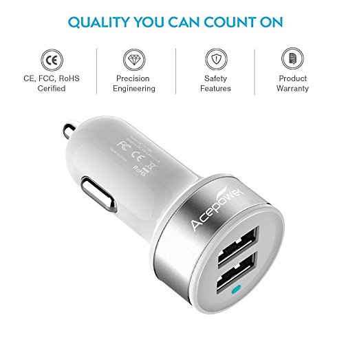 The ACEPower Mini Dual USB Universal Car Charger allows you to charge Smartphones, tablets, music players, and electronic devices on the trip, MFI(Made for iPhone iPad iPod)Approved, optimal performance on all Apple product,cable is not included