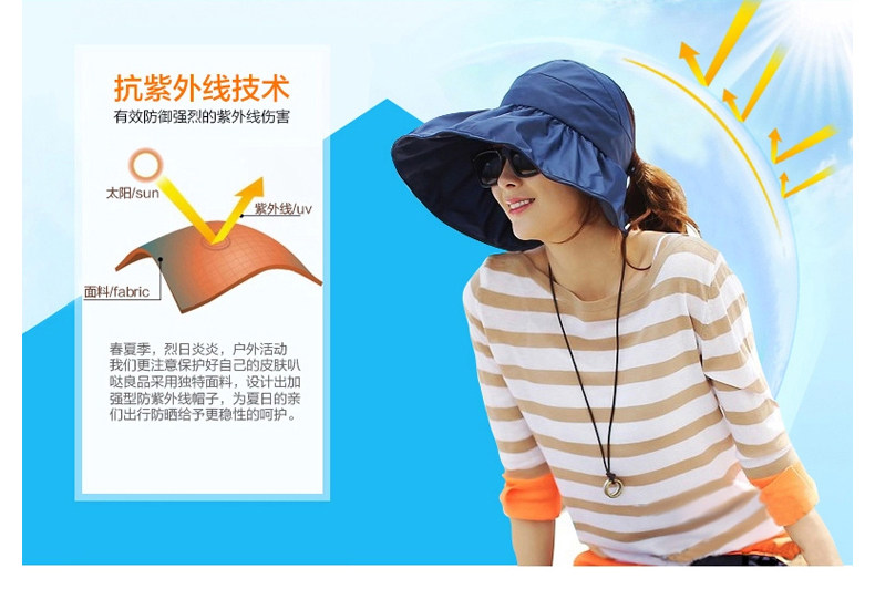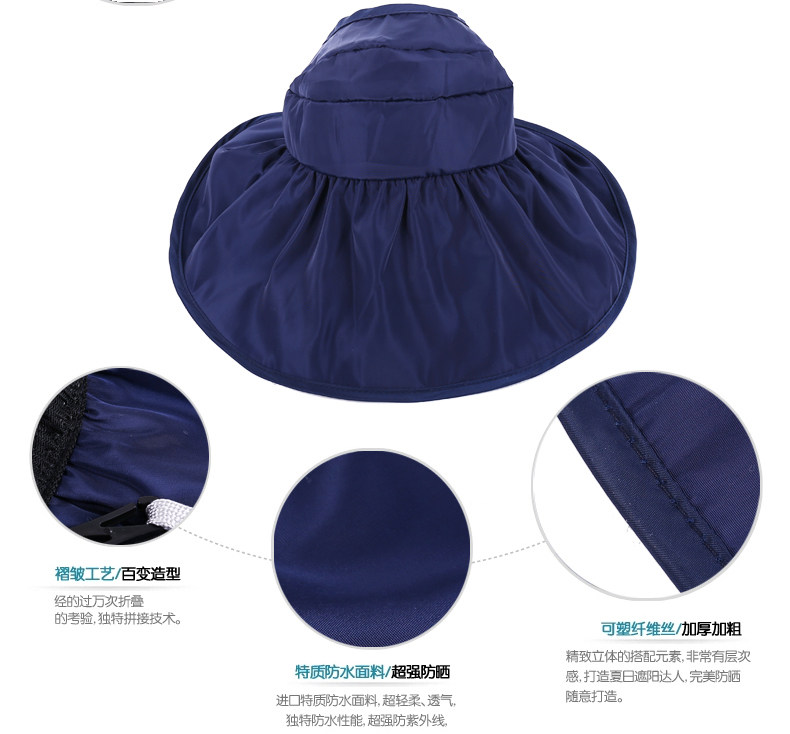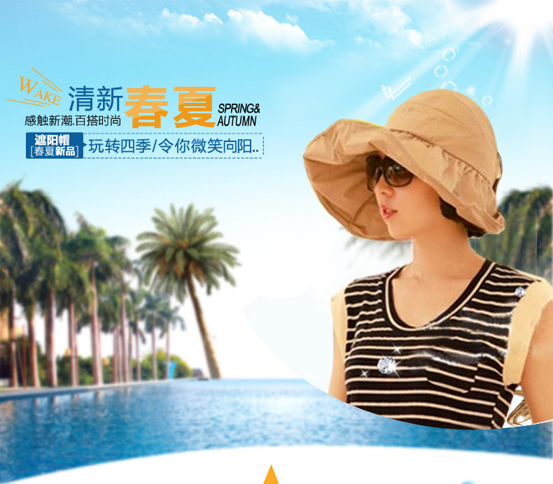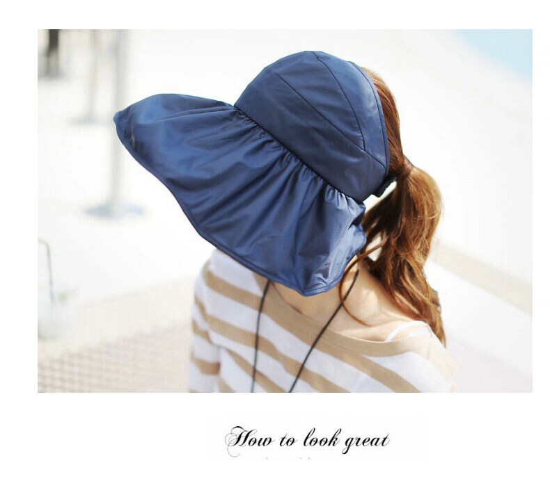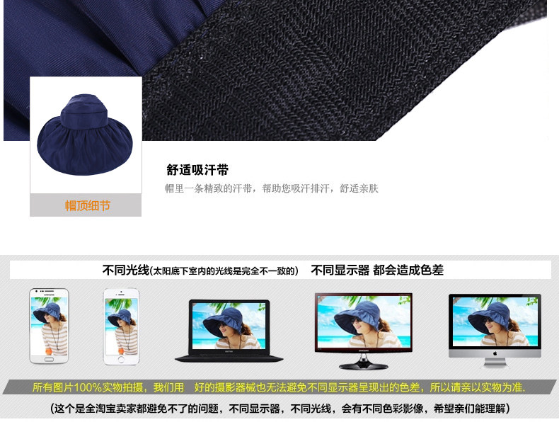 Product parameters: Time to market: Spring 2016 ? Are malls the same paragraph: No ? Applicable scene: Travel ? Suitable for: Middle-aged couple young teenager ? Style: Visor ? Size: Velcro adjustable (sending wind rope) ? Crowns style: Empty top ? Hat style: big eaves ? Eaves shape: flat eaves ? Material: Other ? Crowd: Female ? Brand: seven hot ? style: Casual ? Design details: Light body ? Color Classification: Navy Orange Pink Rose beige black gray khaki watermelon red fluorescent yellow violet blue ? Product Number: QFR20150312 ? Season: Summer ? For ages: 15-19 years old 20-24 years old 25-29