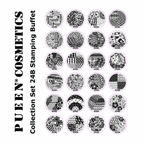 PUEEN Nail Art Stamp Collection Set 24B - STAMPING BUFFET - NEW INVENTION Set of 24 All You Can Stamp Full Size Stamping Image Plates Manicure DIY...