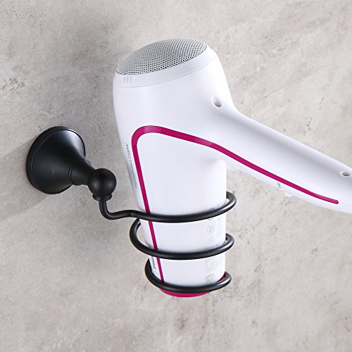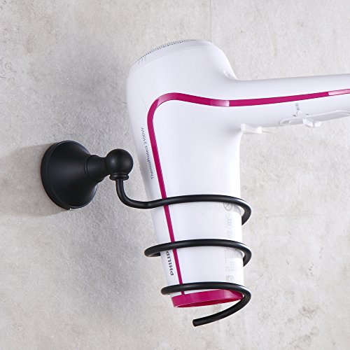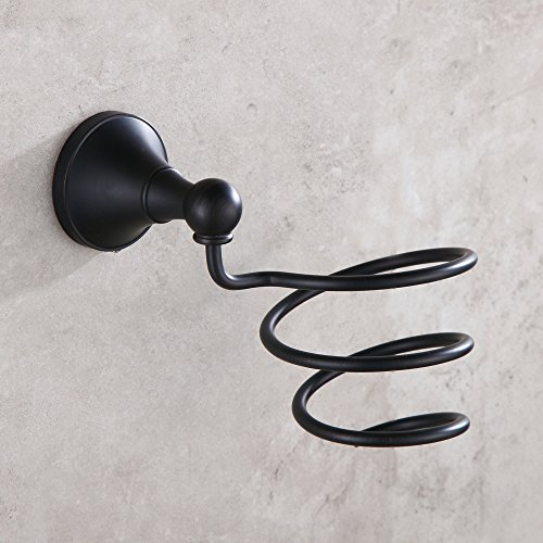 Leyden TM Horn Collection Solid Brass Hair Dryer Holder,Oil Rubbed Bronze, Matte Black