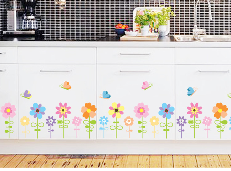 幼儿园教室布置儿童房卧室床头背景腰踢脚线墙贴纸 卡通花丛