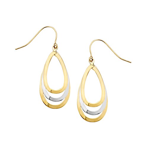 -. Feature : Open Teardrop Design / Crafted in 14K Two-Tone Gold / Measures 1 9/16 x 1/2 Inches