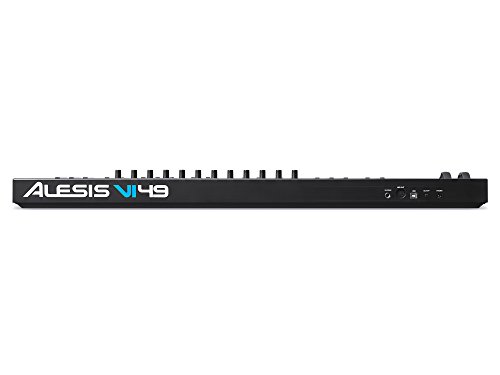 The Alesis VI49 is an advanced USB MIDI keyboard controller that lets you take command of your music software with a series of pads, knobs, and buttons without needing to reach for your mouse. The 49 keys are semi-weighted, velocity- and pressure-sensitive, and you can expand the keyboard to the full melodic range to play bass lines, chords, and melodies using dedicated Octave Up/Down buttons. Pitch and modulation wheels expand the expressive capabilities of your performing, and you can launch clips or finger drum using the 16 velocity-sensitive RGB trigger pads. VI49 features 12 assignable knobs and 36 assignable buttons for manipulating effect plugins and virtual instruments. Open and close filters, adjust volume levels, activate effects, tweak parameters, and more. A single USB connection to your Mac or PC provides power and MIDI functionality, allowing you to plug into your computer and start making music. ? Frequently Asked Questions ? Does this unit need a power supply to work? These controllers are USB hub-powered and do not require a power supply. ?If you would like to purchase a power supply, they can be powered with an optional power adapter (9V DC, 500 mA, center-positive) sold separately. ? Do I need to install drivers for this to work on my PC/MAC? No, these controller are?class-compliant meaning that they are plug-and-play and do not require a specific driver download in order to function. ?The VI series controllers will function on Windows XP, Windows Vista, Windows 7 and Windows 8 as well as all Mac operating systems that are 10.4.11 and above. ?Also, because they are class-compliant, they will continue to function as Windows and Apple come out with later updates and operating systems. ? Can I use this with external midi devices?? Yes you can! ?Use a standard five-pin MIDI cable to connect this MIDI Out to the MIDI In of an external MIDI device (e.g., a synthesizer, sequencer, drum machine, etc.). ?If you are using VI25 to control an external MIDI module, connect VI25's power input to a power outlet using an optional power adapter (9 V DC, 500 mA, center-positive, sold separately). ? Does this have pre-programmed sounds? These controllers do not. ?They are midi controllers and are meant to trigger software in your computer that has sounds built into them such as Ableton Live, Apple Logic ect... ? What is the ROLL function on the VI series?? Press the?ROLL?button to activate or deactivate?Roll Mode. ?In this mode, pressing and holding a pad (that is set to send Note On messages) causes the pad to re-trigger at a rate based on the current Tempo and Time Division settings. This button can function as a toggle (latching) or momentary button. In Roll Mode, some controls have different functions: - Press one of?Assignable Buttons 17?24?to select the current?Time Division, which determines the rate of the Roll feature.