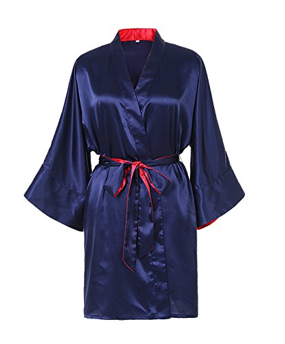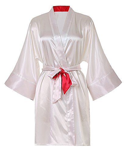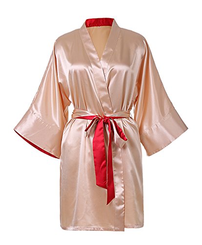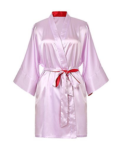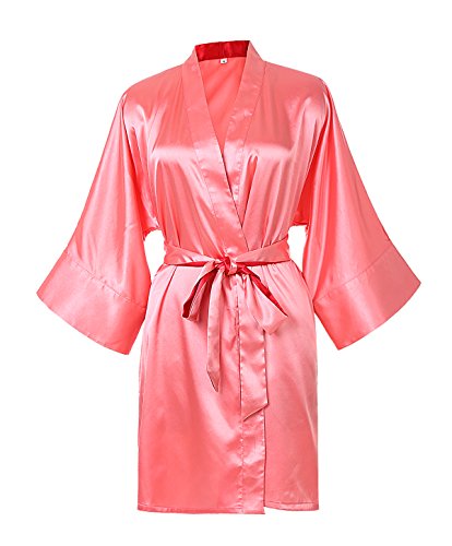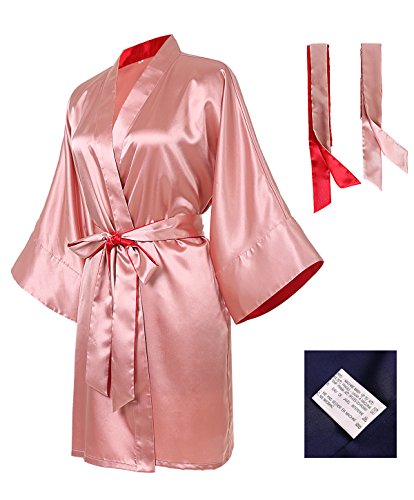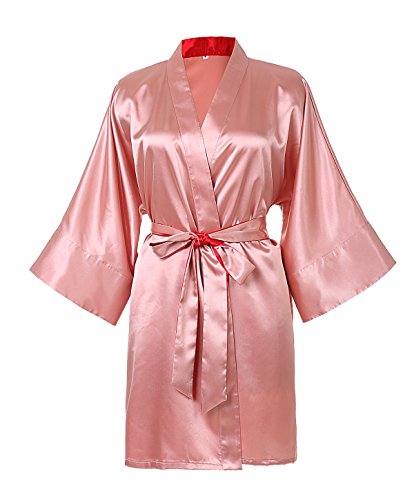 Tideclothes Women's Bridesmaid Robe Short Kimono Satin Robe BlushM