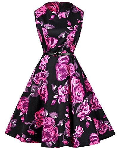 Boat neck and Sleeveless,Concealed zipper at back,A line Swing dresses with Belt