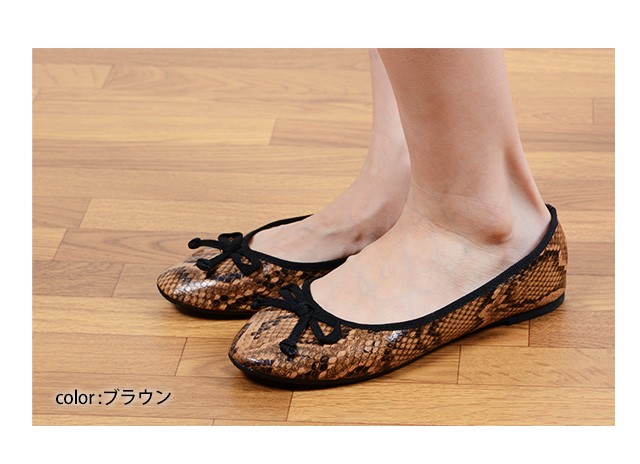 | 商品詳細 | 大人バレエシューズ!着こなしのポイント、パイソン柄 バレエシューズが入荷しました!ローヒールだと子供っぽくなりがちだけど、パイソン柄がピリリとスパイスを効かせ、大人な着こなしに♪パンツスタイルはもちろん、マキシスカートにもオススメ! | ||