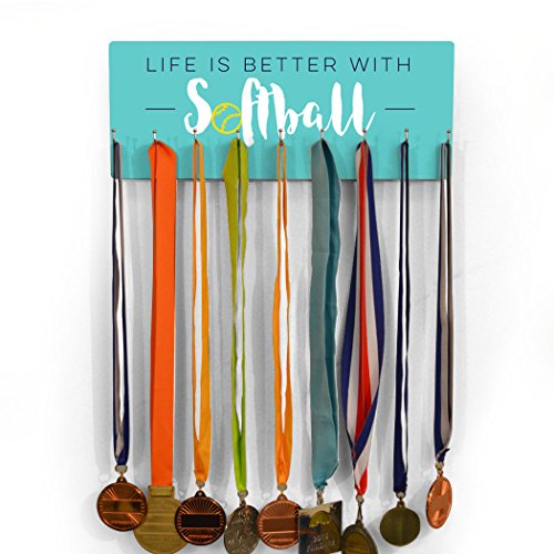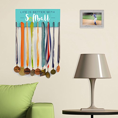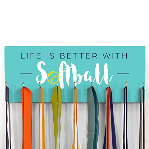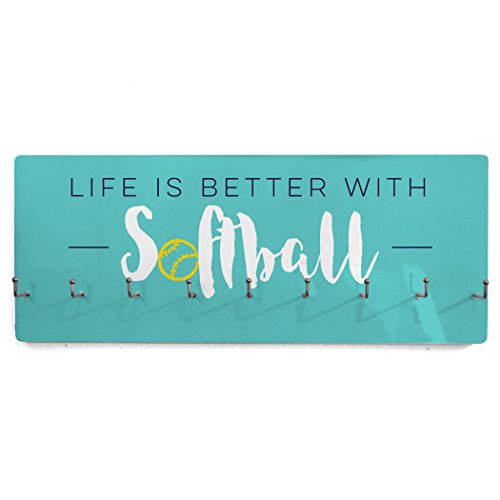 POPULAR DESIGN! Share your passion for softball with this Life Is Better With Softball hook board! From the vibrant colors to the sleek design and smooth finish, there's so much to love about this popular hook board. If you love softball we know you'll love displaying all your softball-related items on this awesome board!