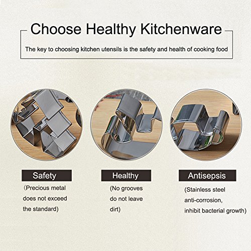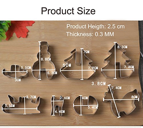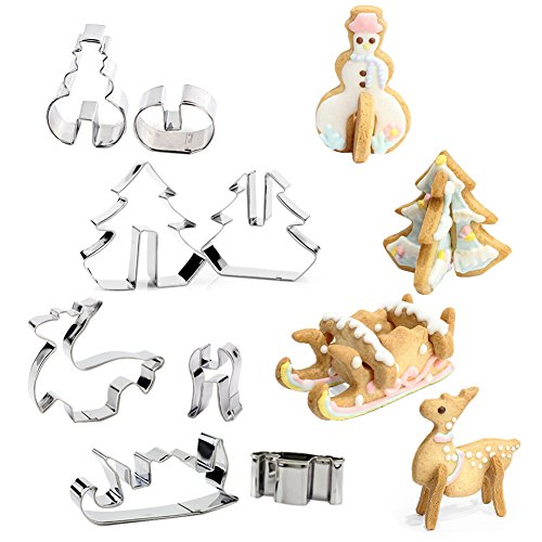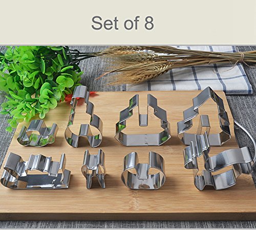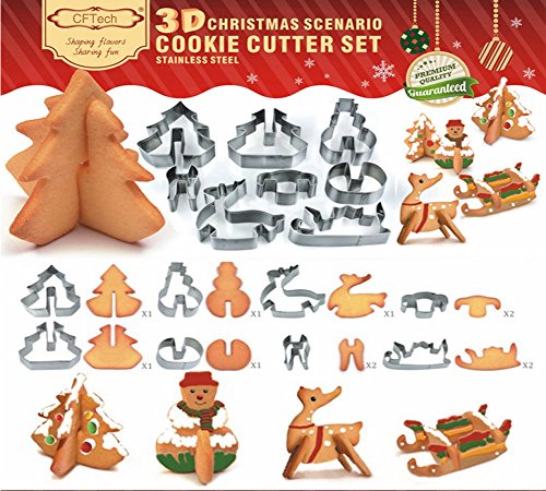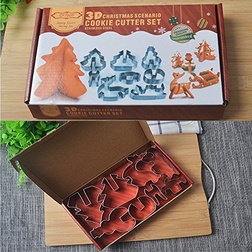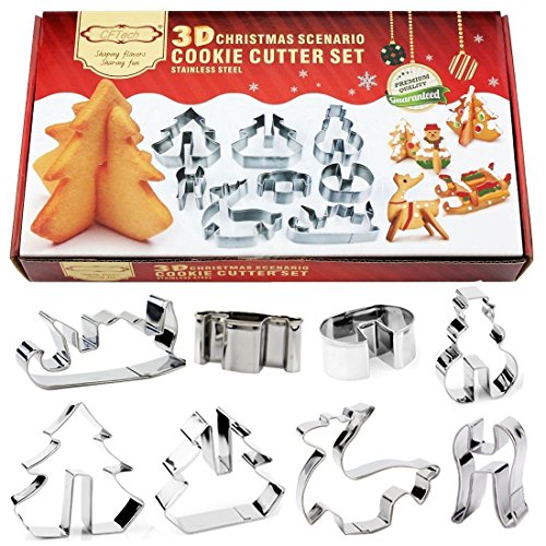 Christmas Cookie Cutters CFTech Set of 8 Stainless Steel 3D Cake Baking Molds Biscuit Tool Holiday Xmas Scenario Shapes including Snowman, Chritmas tree, Jingle Bell, Angel etc
