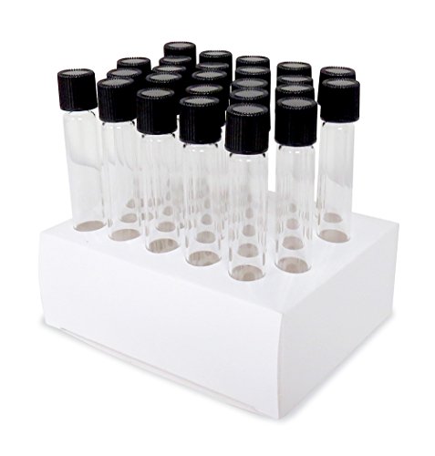 12x75mm, Test Tubes, Borosilicate Glass, Screw Top, Flat Btm, 5ml Vol, With Caps and Cardboard Rack - Karter Scientific, 227M8 (Pack of 25)