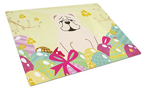 Caroline's Treasures Easter Eggs English Bulldog White Glass Cutting Board Large, Multicolor