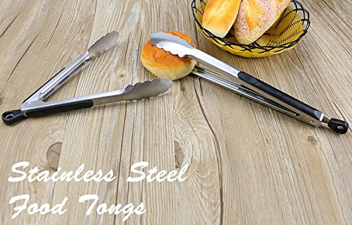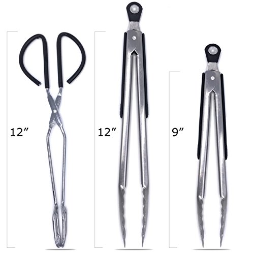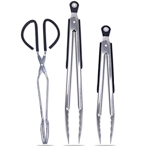 Aroma Trees Set of 3 's Stainless Steel Kitchen Tongs and Angled Tong (9”, 12” and 12” with non-slip grip)