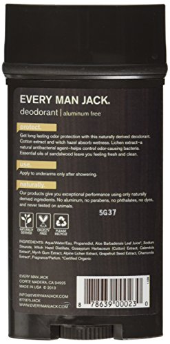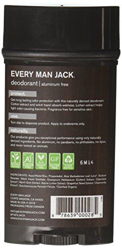 -. Binding : Misc. -. Brand : Every Man Jack -. Color : Parent -. Label : Every Man Jack -. Manufacturer : Every Man Jack -. PackageQuantity : 1 -. ProductGroup : Beauty -. ProductTypeName : BEAUTY -. Publisher : Every Man Jack -. Size : Parent -. Studio : Every Man Jack -. Title : Every Man Jack - Deodorant Stick Aluminum Free Signature Mint