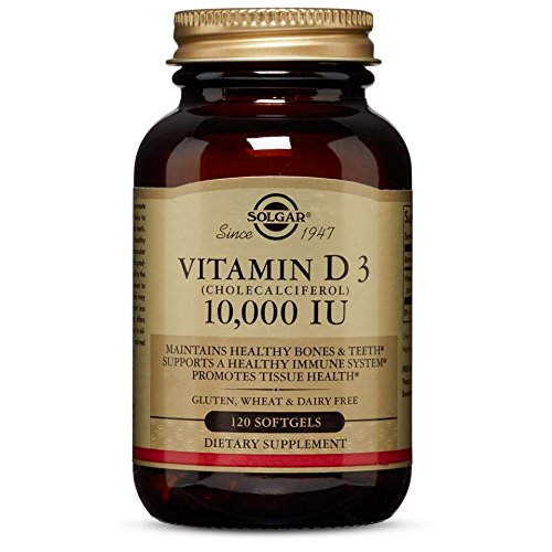 -. Feature : WHY VITAMIN D: With age, the way the body absorbs Vitamin D can become inefficient over time. Vitamin D is required in order to promote the absorption of calcium which is key in maintaining healthy teeth and bones. Vitamin D also helps support a healthy immune system and neuromuscular function / BODY BENEFITS: The Vitamin D3 in these softgels is the same form of Vitamin D3 that your body produces when your skin is exposed to sunlight which promotes tissue health. In addition, Vitamin D3 supports and maintains healthy bones, teeth and immune system / EASY TO ABSORB: The formulation of Solgar Vitamin D3 10,000 IU softgels offers advanced Vitamin D3 support in simple, oil-based softgels in order to promote optimal absorption and assimilation / GLUTEN-FREE: These softgels are free of gluten, wheat, dairy, soy, yeast, sugar, sodium and artificial flavors, sweeteners, preservatives and colors