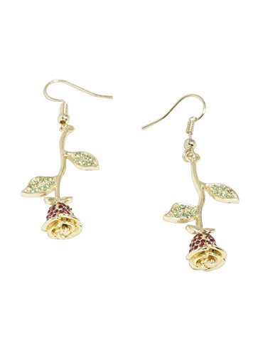 The rose she had offered was truly an enchanted rose, which would bloom until his 21st year. If he could learn to love another, and earn their love in return by the time the last petal fell, then the spell would be broken. If not, he would be doomed to remain a beast for all time. Make your look as timeless as Belle and the Beast's love with these enchanted rose drop earrings.Feature