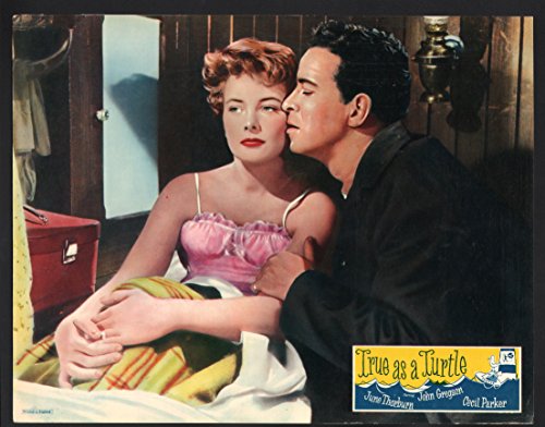 MOVIE POSTER: True as a Turtle Lobby Card-John Gregson kissing June Thorburn on the cheek.