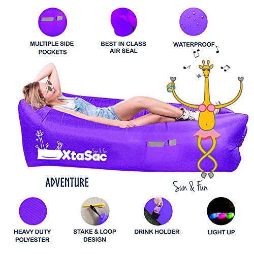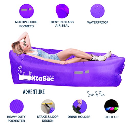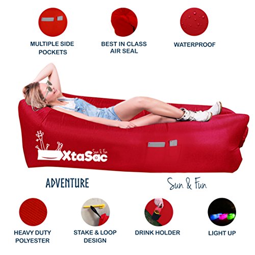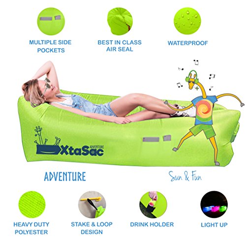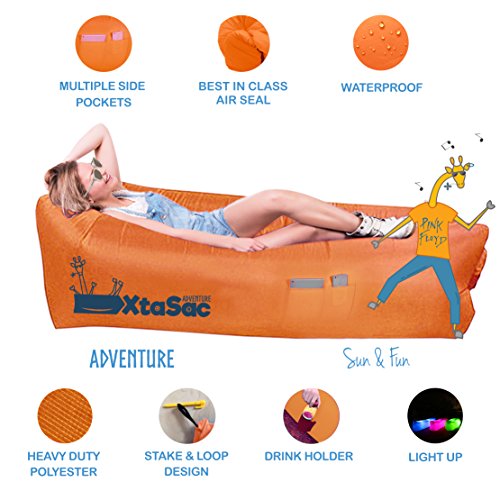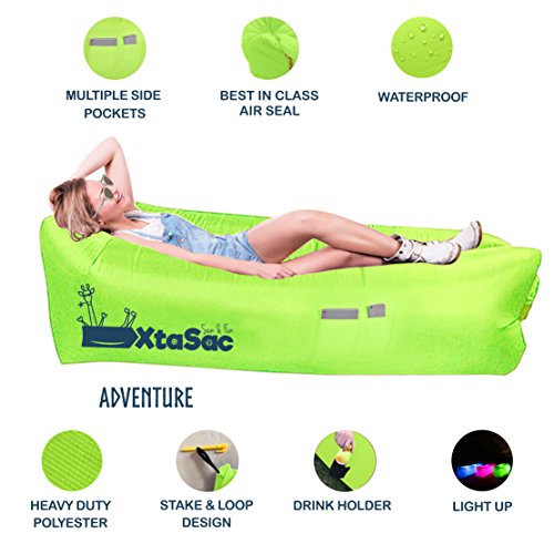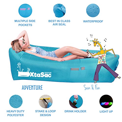 | Air Sofa in a Bag no Pump Easy Inflatable Lounger with Pockets 2 Variants ADVENTURE Extra Long ... |